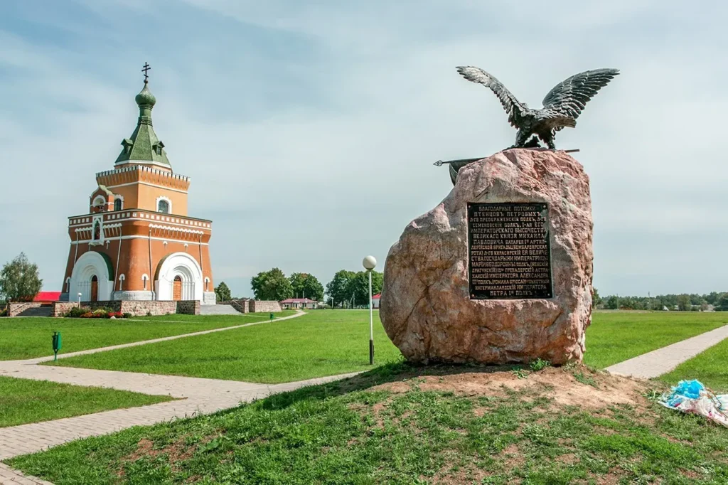 Погибшие при Лесной были похоронены на деревенском кладбище, где солдаты соорудили небольшую деревянную церковь. Но она не сохранилась. Зато в 1908 году в честь 200-летия победы при Лесной царское правительство решило увековечить это место. На пожертвования граждан был заложен храм-памятник в честь Святых Петра и Павла. Открытие состоялось четырьмя годами позже.